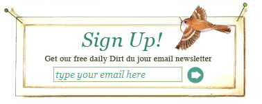 Since it looks like I’ll be getting into gardening this summer, I have signed up to receive the Dirt du Jour newsletter. I’m looking forward to reading Cindy’s many hints and tips, and getting my hands into the dirt. 😉
