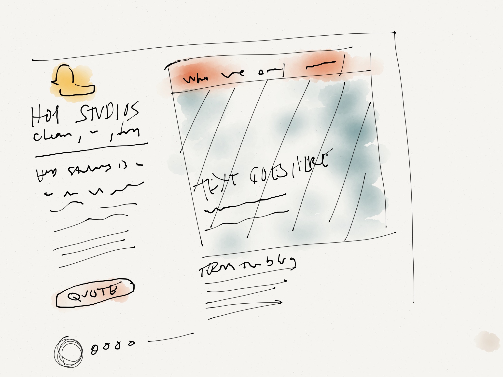 The original design idea for the Hop Studios website was a two column layout, with a thinner left column for navigation and a wider right column where the content would be placed. This design didn’t work for this particular project because the “our work” pages needed to reuse assets that looked misplaced on this design.