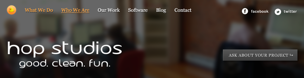 History, recycling, variation — the big three touchstones for the Hop Studios site redesign. Looking back—farther than just the current thing you’re redesigning—allows for a designer to get (re)inspired by elements that maintain the identity of the brand, whether it be a subtle image roll-over effect or choice of colour palette. Reusing elements from a previous design can be challenging—even limiting—but ultimately can result in a design which not only saves a lot of time or money but can help maintain the integrity of the brand. Finally, designing significant layout variations for different types of content presents the content more effectively, and gives the site a much “bigger” feel than it would have if it were all of one variety.