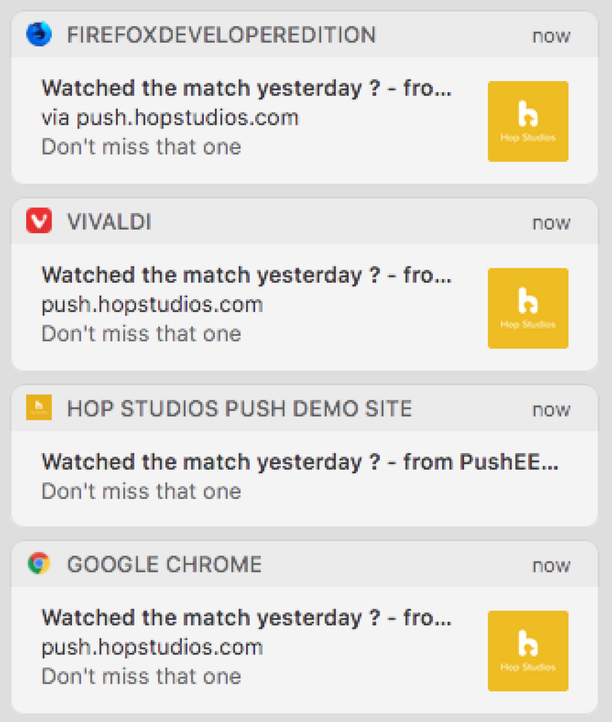 Visit https://push.hopstudios.com/ for a working demo of the PushEE add-on in action, and try sending a browser notification yourself.