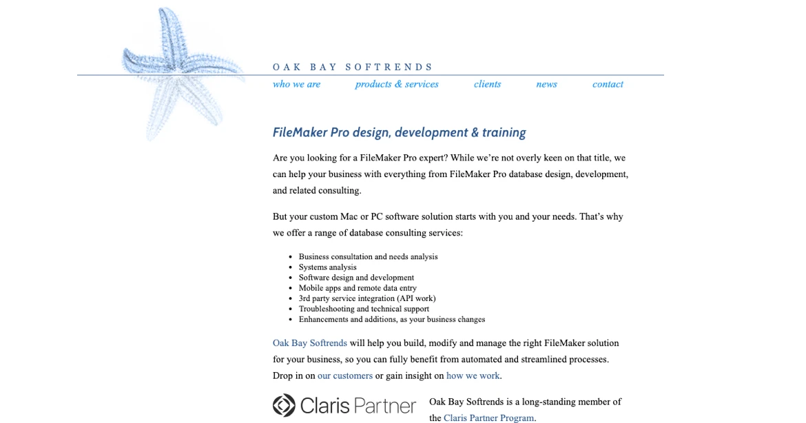 Oak Bay Softrends, a team of FileMaker developers and strategists from Vancouver, BC, with over 30 years of experience, creating custom solutions for their clients. Hop Studios has worked with Oak Bay Softrends for nearly two decades, collaborating on copywriting, analytics, marketing, and ExpressionEngine upgrades (just to name a few).