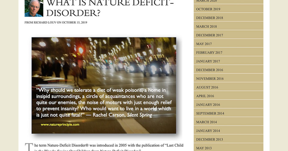 Richard Louv is a journalist and author of ten books, including Last Child in the Woods and The Nature Principle, and co-founder of the Children & Nature Network. His work has helped launch an international movement to connect children, families and communities to nature.