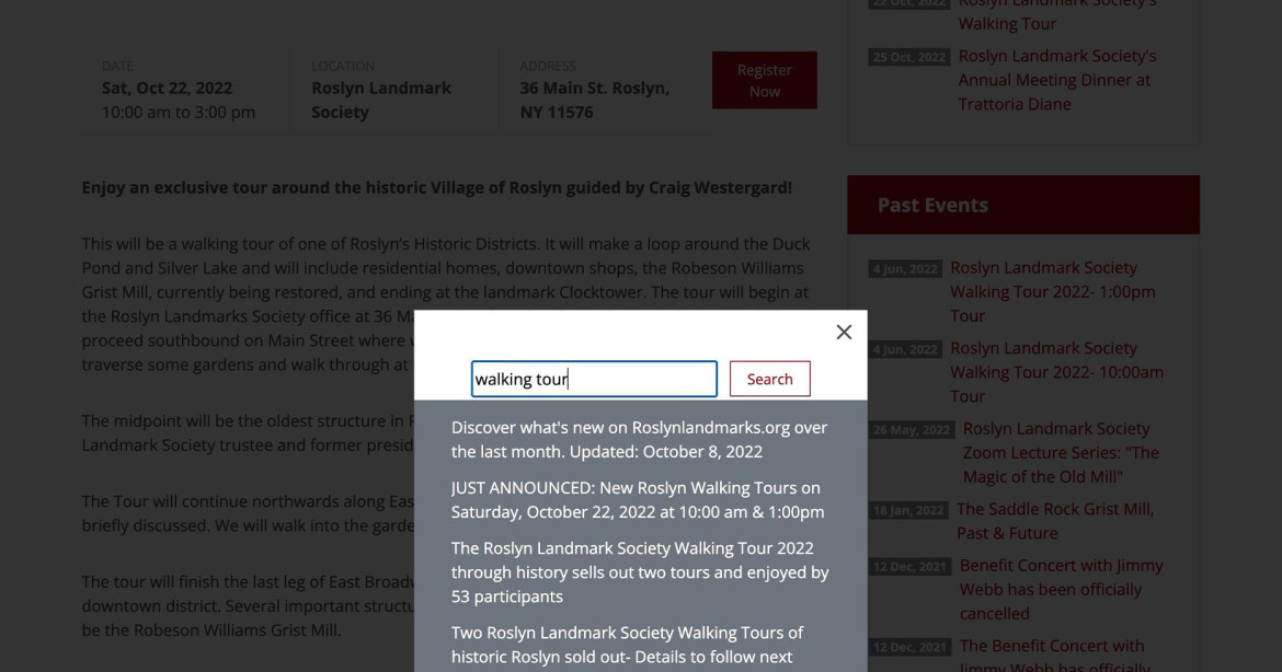 In 2020, the Roslyn Landmark Society sought out Hop’s expertise with an ambitious list of upgrades, as well as routine maintenance tasks. Our team was eager to jump on board to help Roslyn in their aim to provide a more user-friendly site, both to their community and the preservation movement at large. Some of the more significant undertakings that Hop Studios tackled with Roslyn’s site included: implementation of user commenting with moderation settings; a hosting migration to Nexcess; and the addition of a filter functionality for their Profiles page.