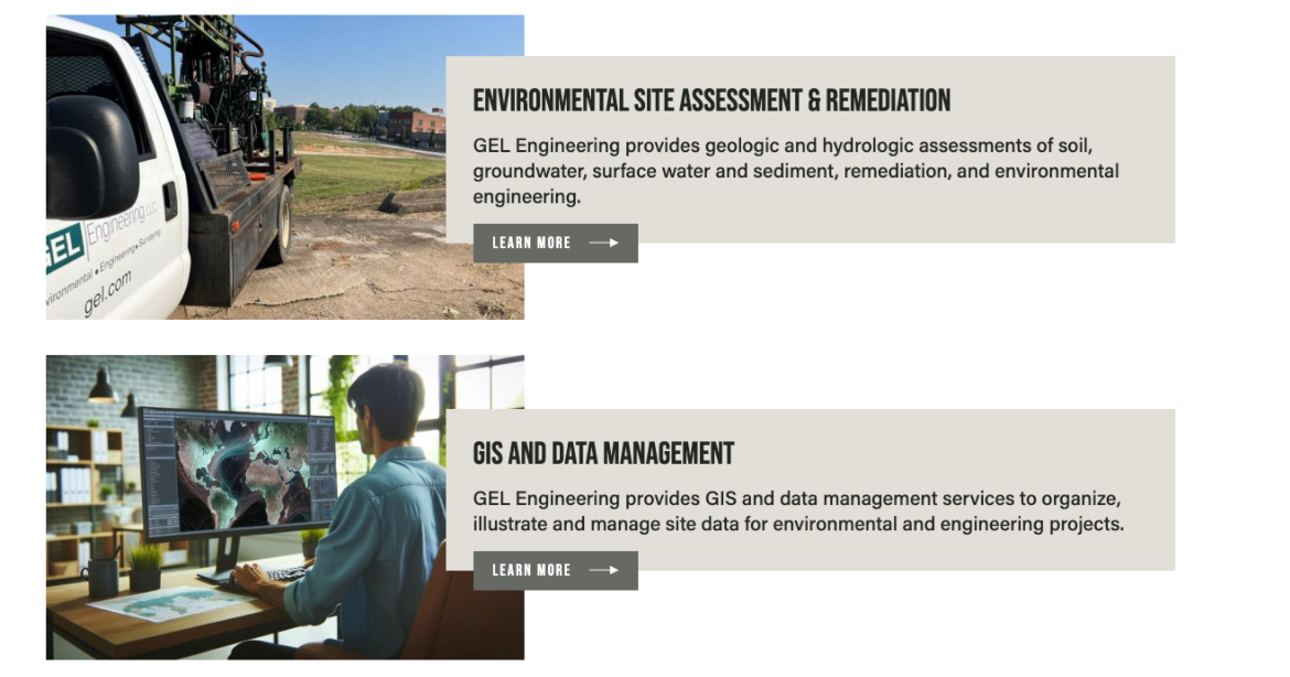 The GEL Group has grown to encompass three subsidiary companies: GEL Laboratories, GEL Engineering, GEL Solutions, and their affiliate company, Cape Fear Analytical. With its roots in such technical work, they wanted their website to reflect that same high level of expertise.