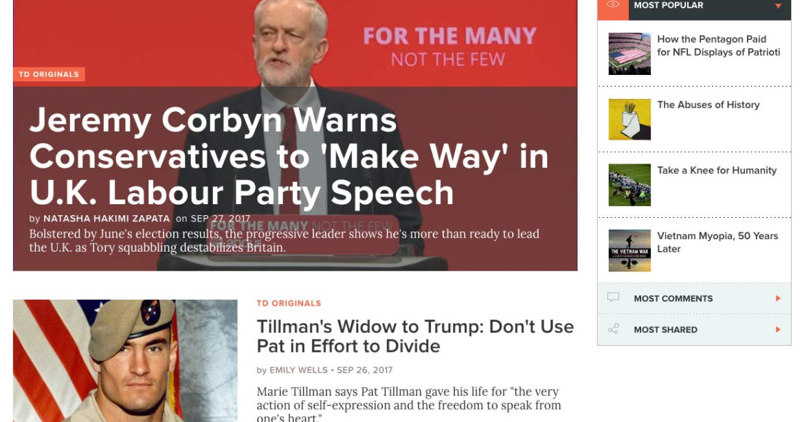 Truthdig is a Web magazine that provides in-depth coverage of current affairs and news assembled from a progressive point of view. The site has won both the juried Webby Award and the People’s Voice Award for Best Political Blog.