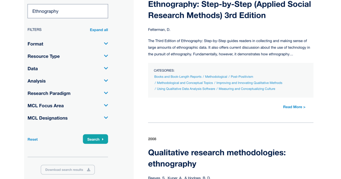 The Medical Cultures Lab at UCSF is a scholarly community that works to understand medical culture and advance health equity. Their website is intended to be a resource; for researchers who are new to using qualitative methods or mixed methods in their research to start, find a curated list of resources in a searchable database; and for others to find articles such as white papers done as blog posts and content in specific areas that lab members currently work in.