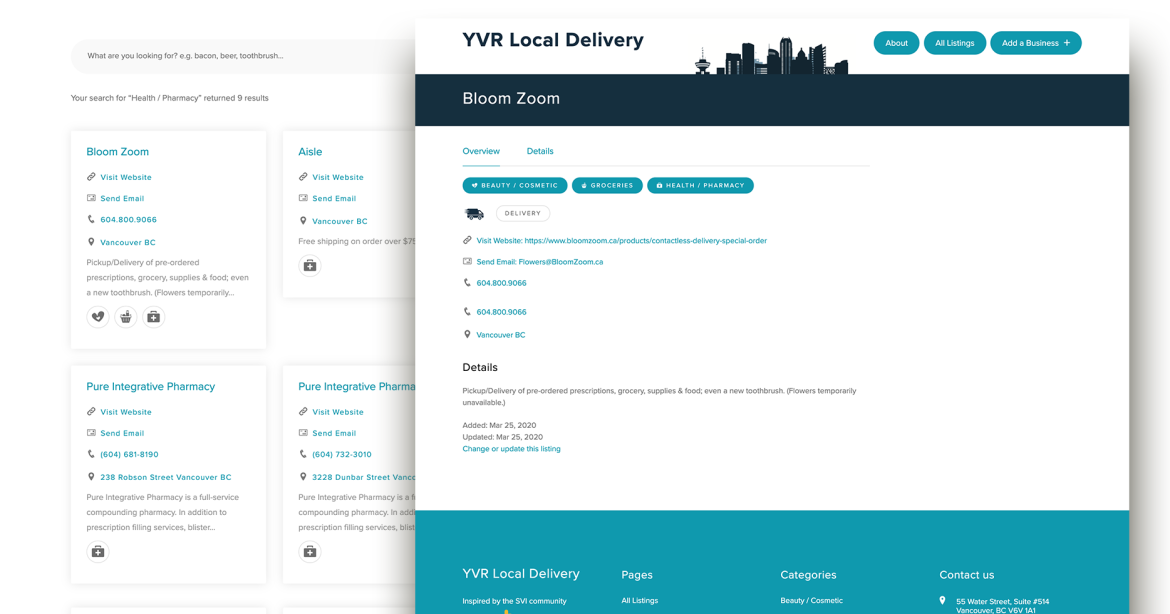 In the face of COVID-19, we all found ourselves changing how we source essential goods and services. Hop Studios responded by creating YVR Local Delivery to highlight businesses delivering or offering services tailored to the stay-at-home period.